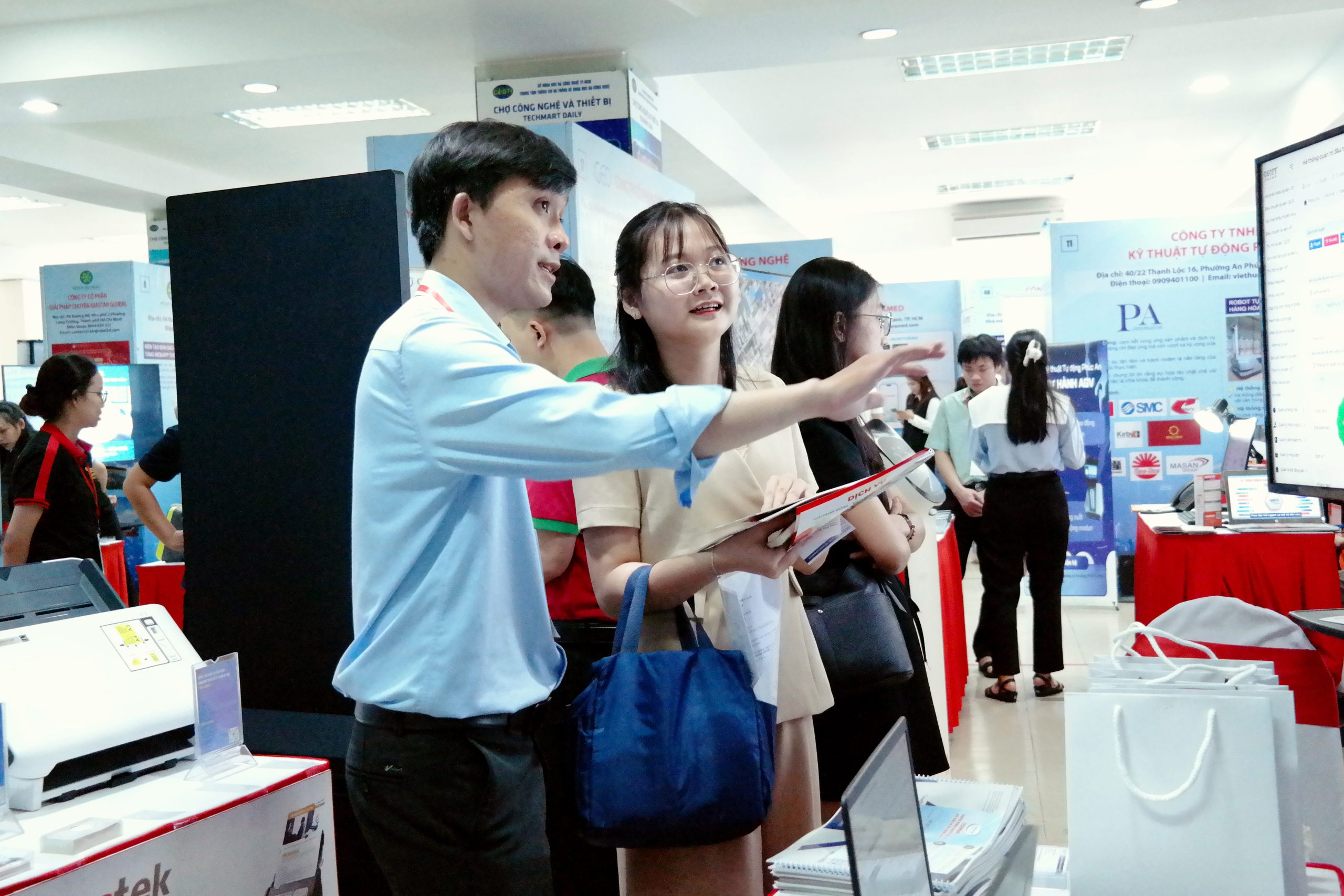 Một điểm thu hút lớn của Techmart năm nay là khu vực tư vấn chuyên gia và kết nối công nghệ. Tại đây, các chuyên gia từ viện nghiên cứu, trường đại học và doanh nghiệp công nghệ trực tiếp hỗ trợ các cơ sở giáo dục xây dựng chiến lược chuyển đổi số, lựa chọn hạ tầng CNTT và nền tảng quản lý phù hợp cho đào tạo, tài sản, nhân sự và tài chính.
