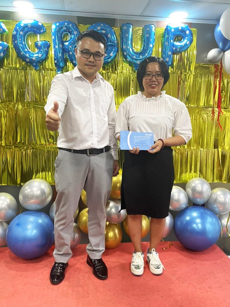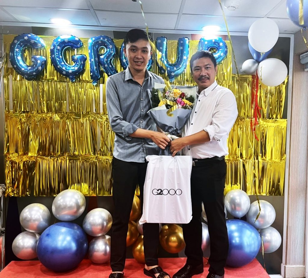 Sếp Hiếu phát biểu với mục tiêu của GGROUP: ‘TĂNG KHÁCH ĐẾN, GIẢM KHÁCH ĐI – TĂNG REUSE, GIẢM REWORK‘ và nhận quà tri ân nhân ngày Nhà giáo Việt Nam từ Công ty ^^