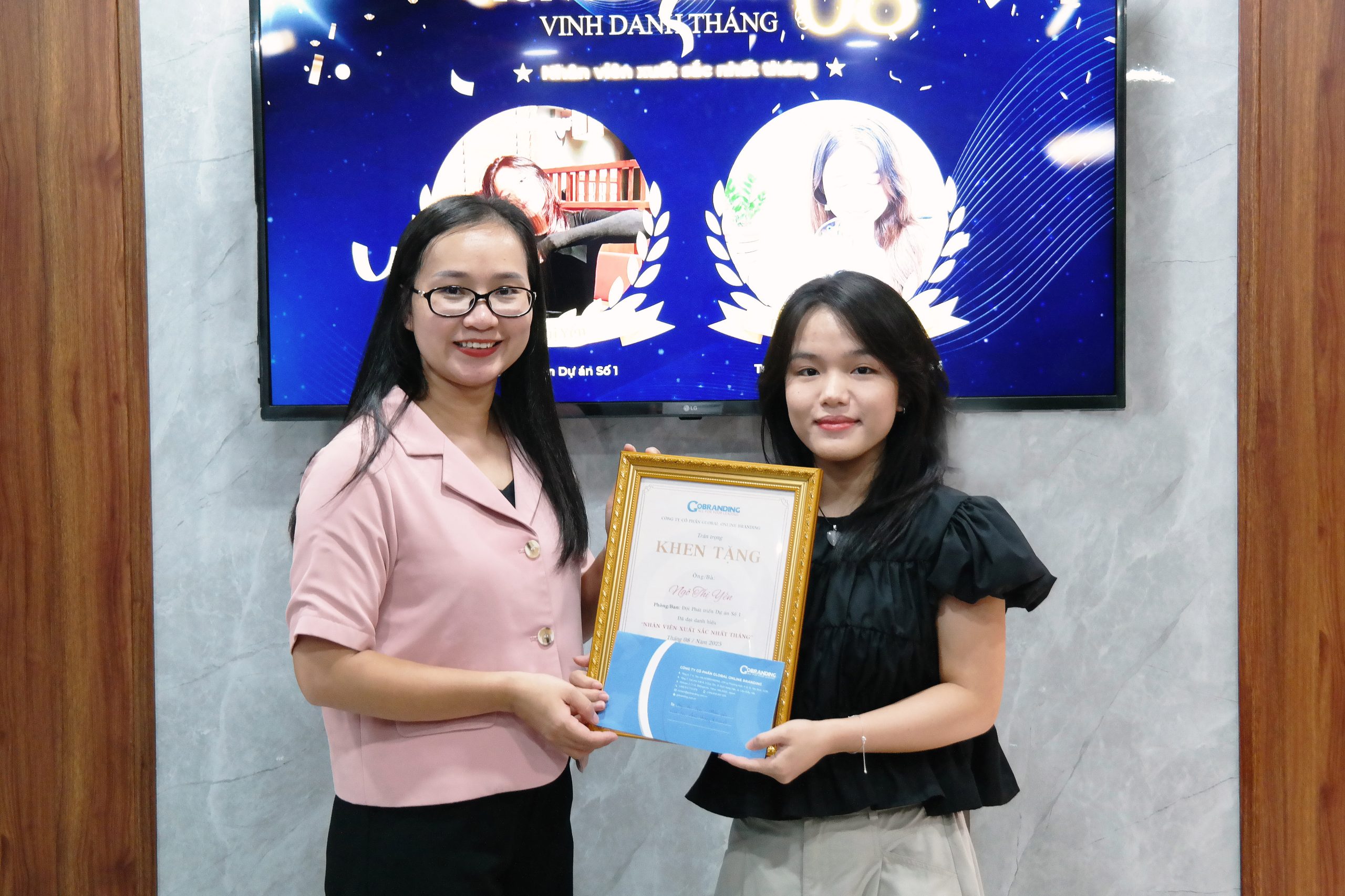 Ms. Trần Thị Thùy – TP. Phòng HCQT-NS đại diện GOBRANDING chụp ảnh lưu niệm cùng Ms. Ngô Thị Yến