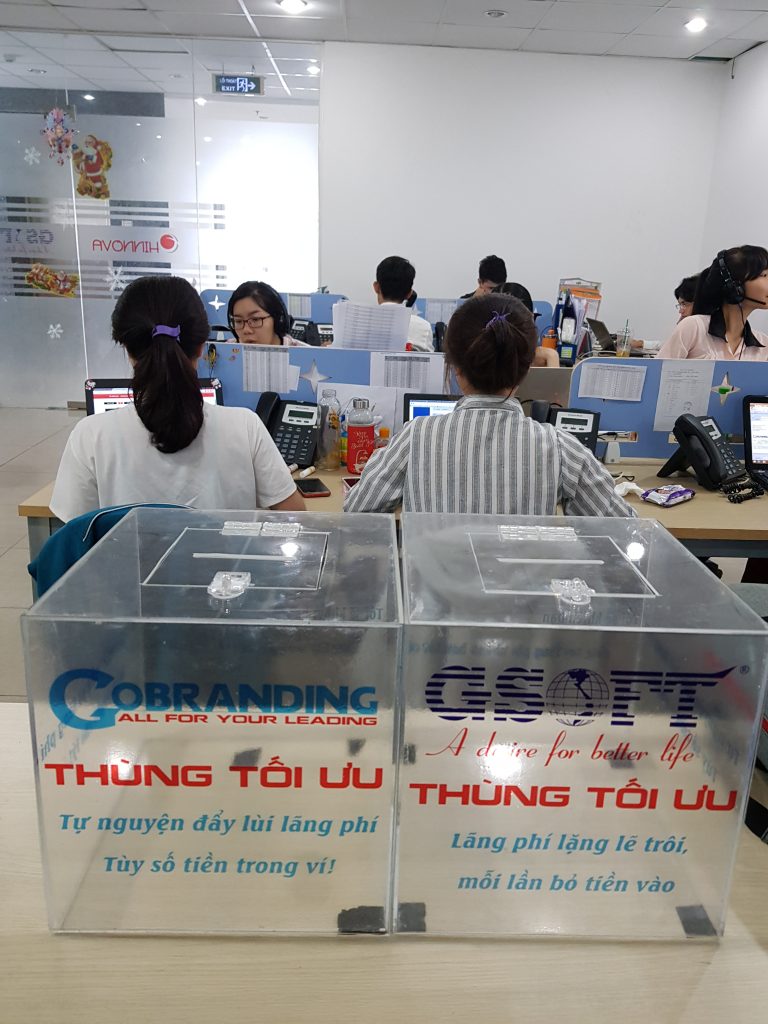 Việc đóng tiền ở Thùng Tối Ưu không bắt buộc nhé. Nếu mọi người tự cảm thấy mức độ lãng phí, tắc trách, sai sót… của mình đáng nhớ, cần sửa chữa thì TỰ NGUYỆN BỎ TIỀN một cách vui vẻ, thoải mái và công khai. Bạn bỏ bao nhiêu cũng tùy thuộc vào túi tiền nhé, 1K, 2K, 3K, 50K hay 100K… gì cũng được. Công ty không sao lưu bạn đã đóng bao nhiêu vào Thùng Tối Ưu, chỉ ghi nhận thái độ tự nguyện và hoàn thiện bản thân của bạn mà thôi.